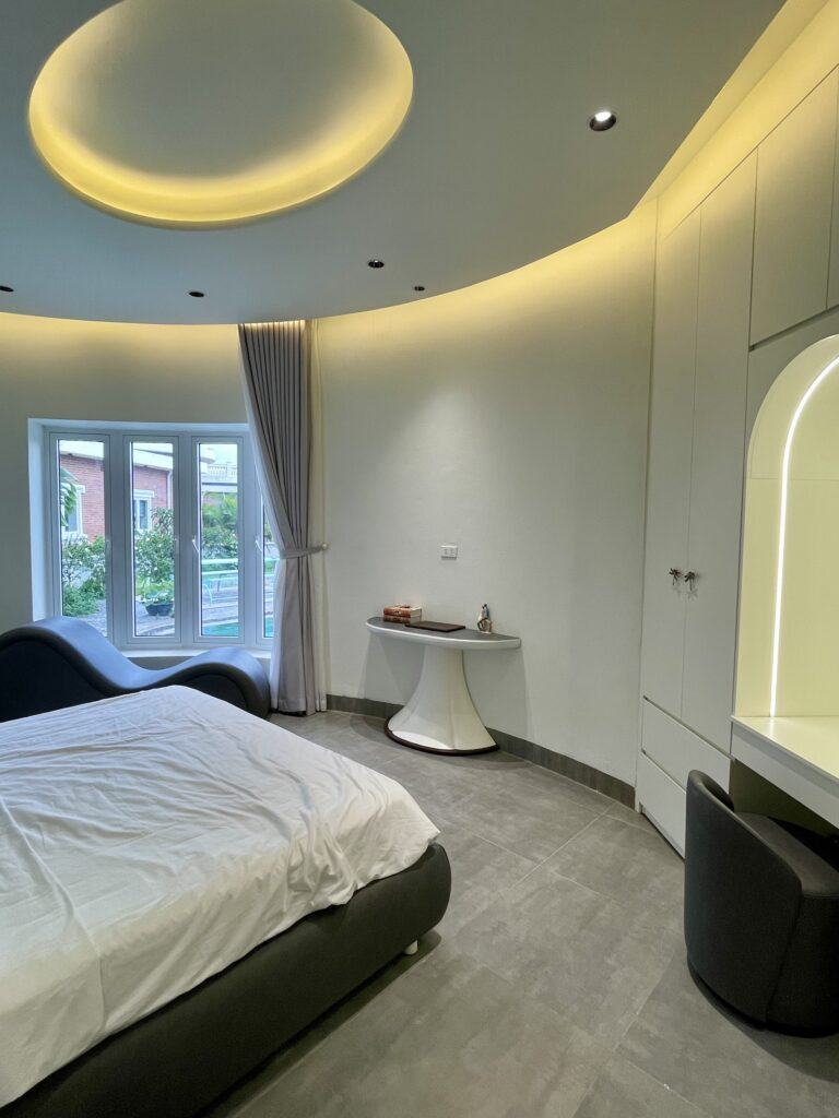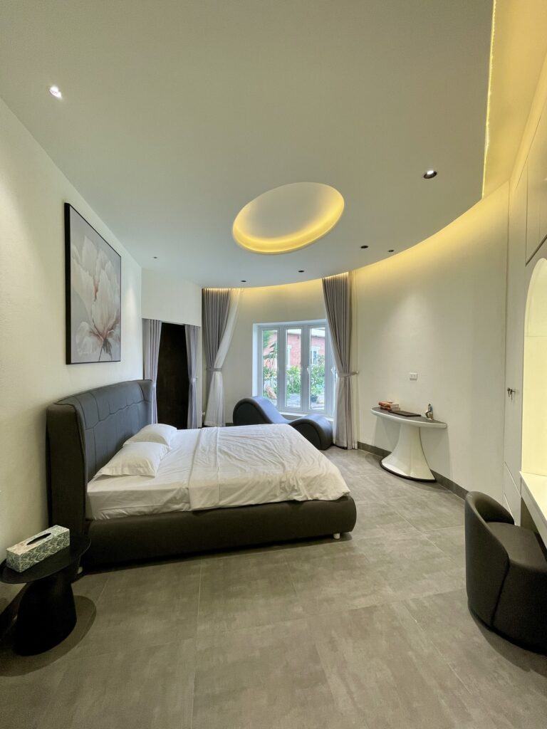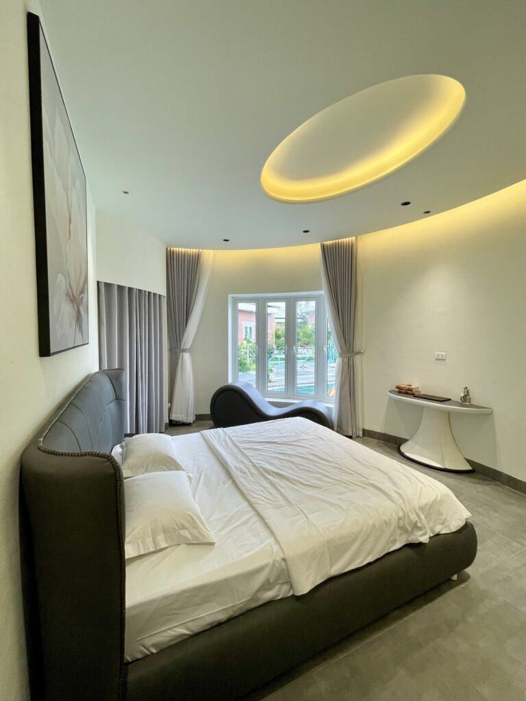 ✔️ Villa kiểu pháo đài đẳng cấp, phong cách nội thất tinh tế, khác biệt và thư thái, diện tích lên tới 632m2, 3 phòng ngủ cao cấp, 1 phòng khách view bể bơi, 1 bếp hiện đại, 4WC cao cấp, sân đỗ ô tô 5 chiếc, sân vườn nhiều tiểu cảnh checkin đẹp, sân và bếp BBQ, bể bơi đẳng cấp riêng.